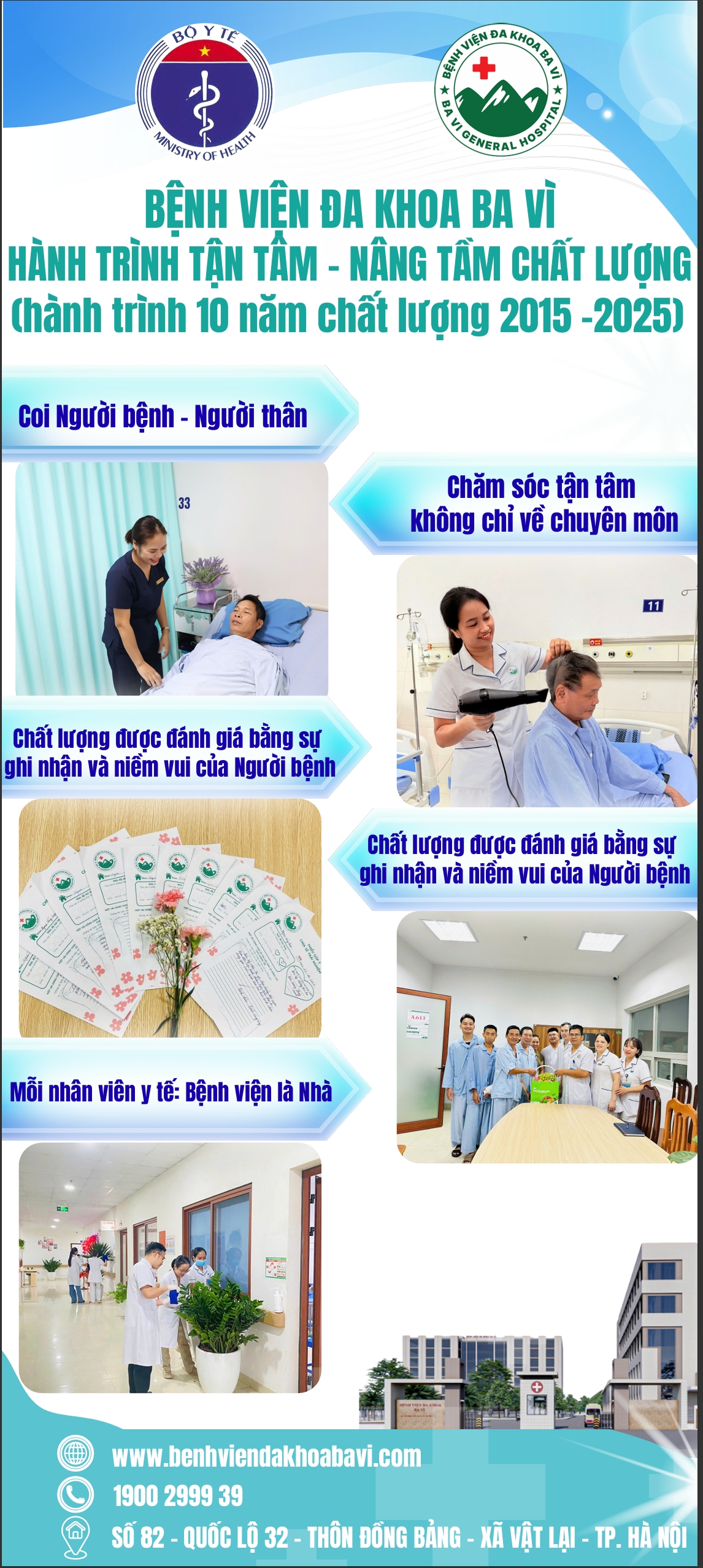 Với định hướng “tận tâm – chất lượng”, Bệnh viện Đa khoa Ba Vì tiếp tục đẩy mạnh cải tiến phục vụ và nâng cao trải nghiệm người bệnh. Hành trình 2015–2025 là nền tảng để bệnh viện phát triển bền vững, hướng tới chăm sóc ngày càng an toàn – hiệu quả – hài lòng.