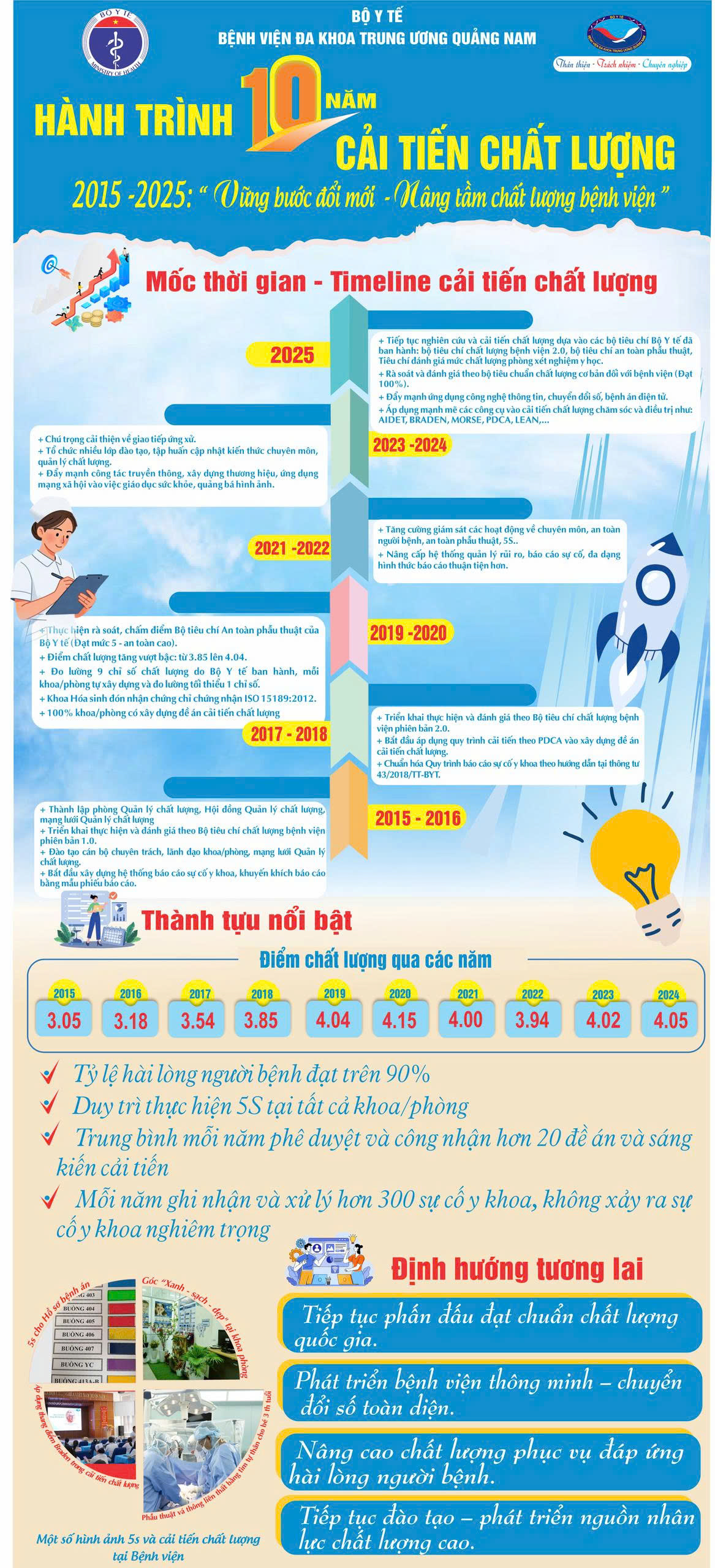 Hành trình 10 năm cải tiến của Bệnh viện Đa khoa Trung ương Quảng Nam là minh chứng cho tinh thần đổi mới mạnh mẽ, sự đoàn kết của tập thể và cam kết lấy người bệnh làm trung tâm. Trong thời gian tới, bệnh viện tiếp tục mục tiêu:
