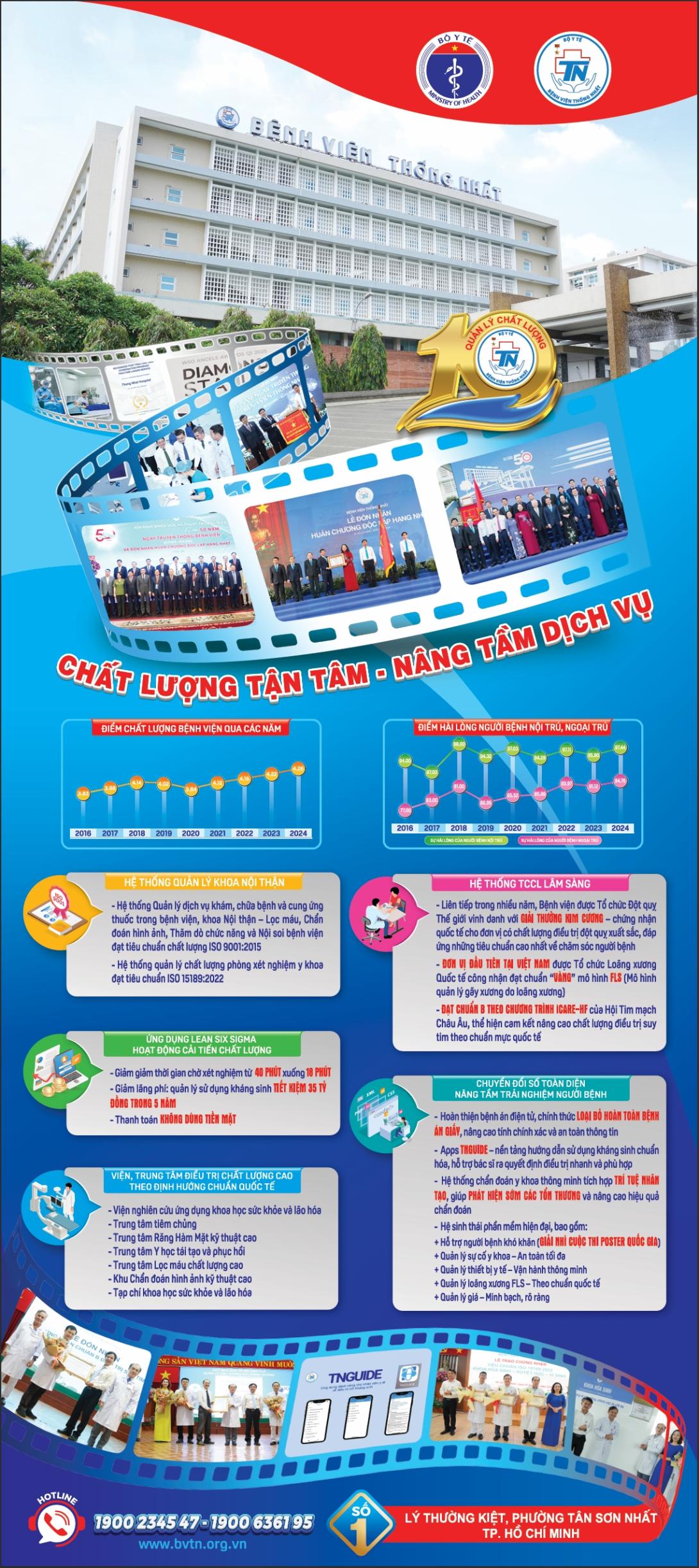 Hành trình 10 năm cải tiến của Bệnh viện Thống Nhất là minh chứng cho sự cam kết mạnh mẽ trong nâng cao chất lượng khám chữa bệnh, ứng dụng công nghệ, phát triển chuyên môn và tăng cường chăm sóc người bệnh. Những thành tựu đạt được đã đưa bệnh viện trở thành một trong những cơ sở y tế đi đầu cả nước về chất lượng và đổi mới.