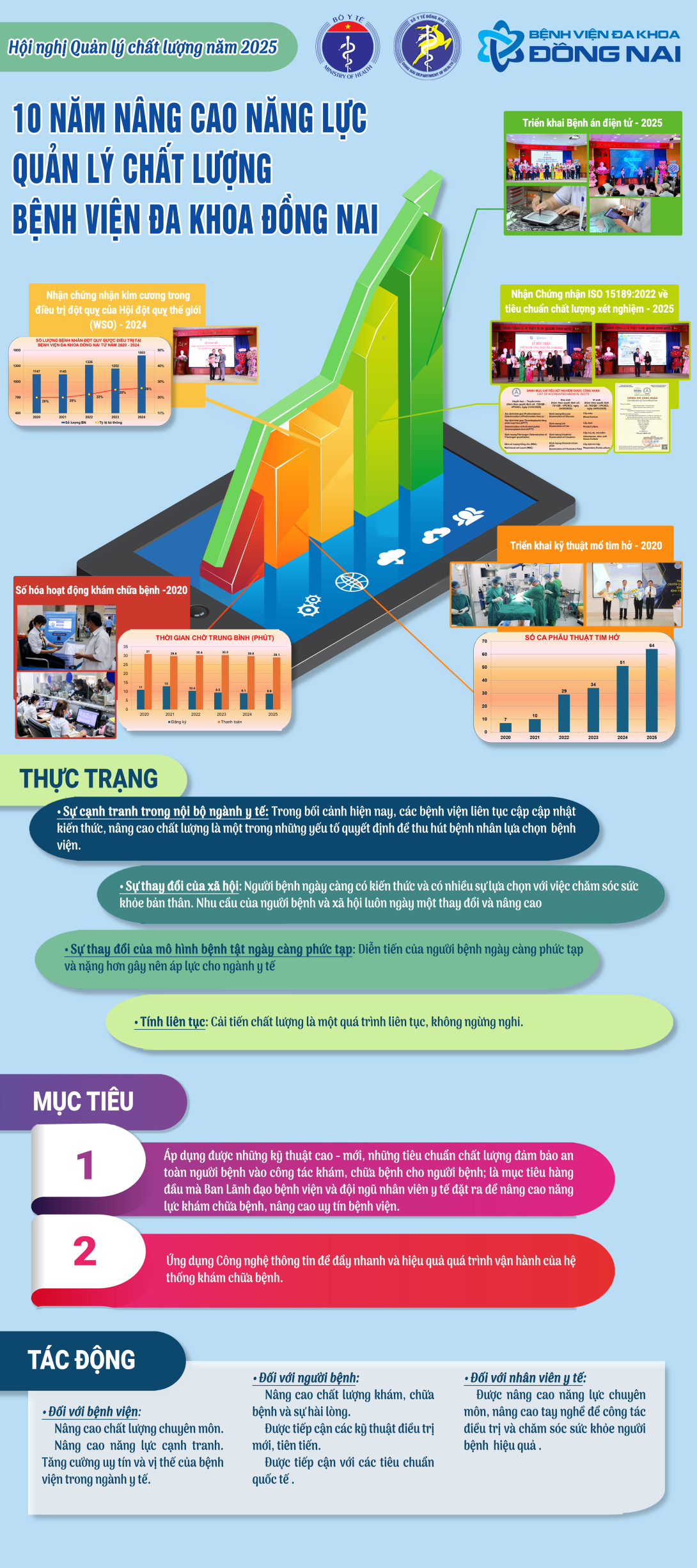 10 năm cải tiến chất lượng là hành trình nỗ lực bền bỉ của tập thể Bệnh viện Đa khoa Đồng Nai. Với những thành tựu quan trọng trong chuyên môn, chuyển đổi số, an toàn người bệnh và tiêu chuẩn quốc tế, bệnh viện tiếp tục hướng đến mô hình y tế hiện đại, chuyên nghiệp và nhân văn.
