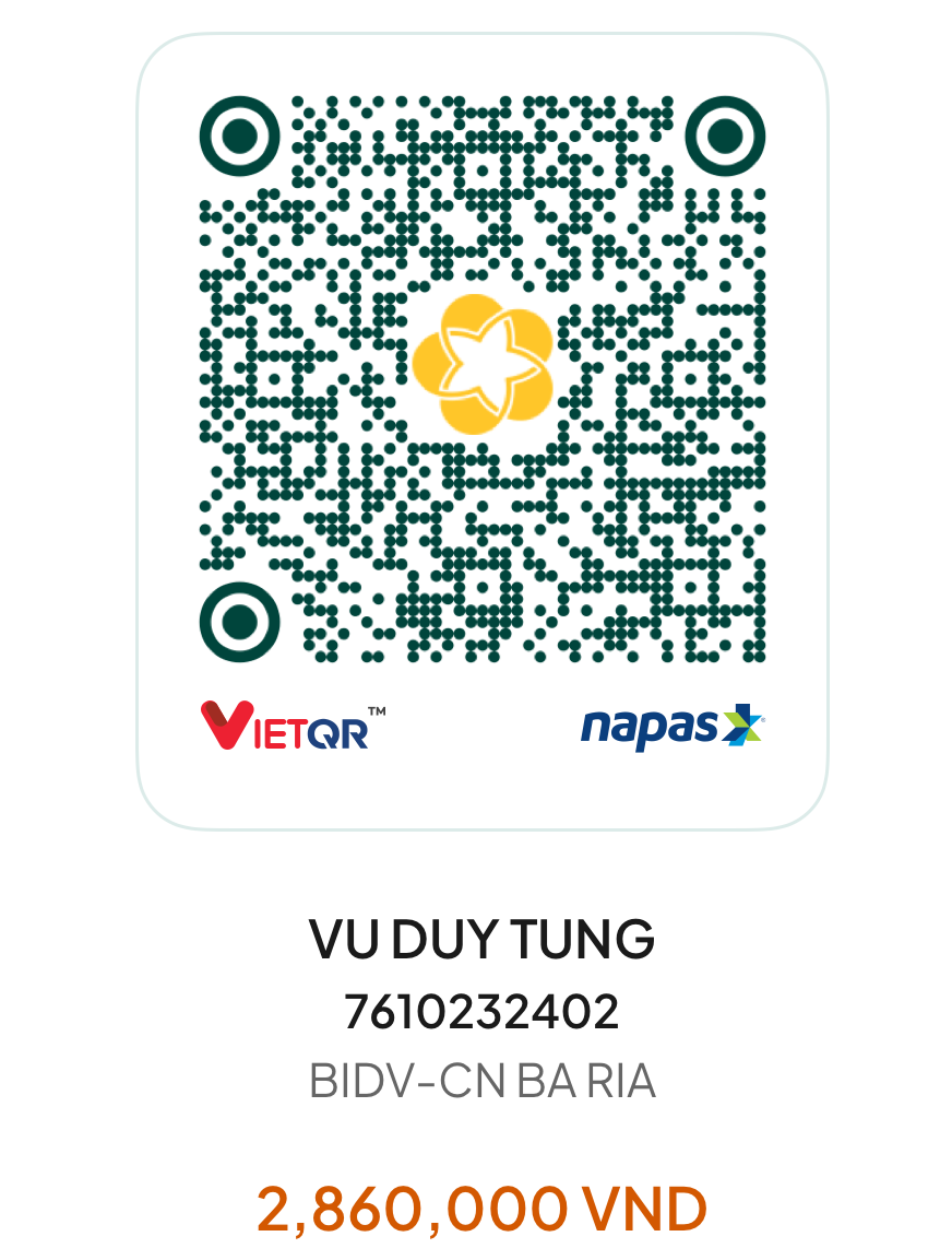 - Chụp màn hình thanh toán thành công để gửi trong form đăng ký ở Bước 2.