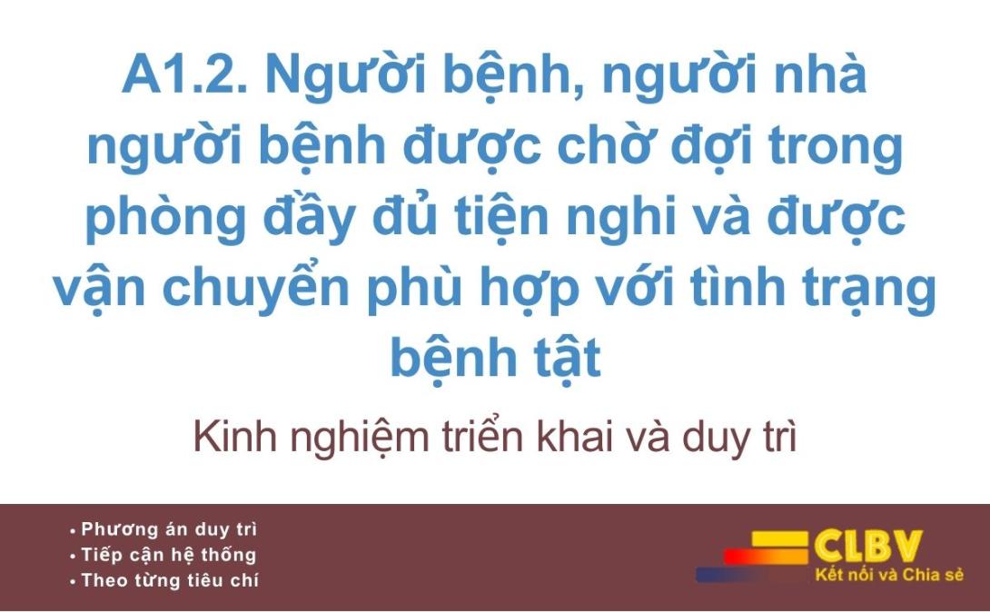 A1.2. Người bệnh, người nhà người bệnh được chờ đợi trong phòng đầy đủ tiện nghi và được vận chuyển phù hợp với tình trạng bệnh tật