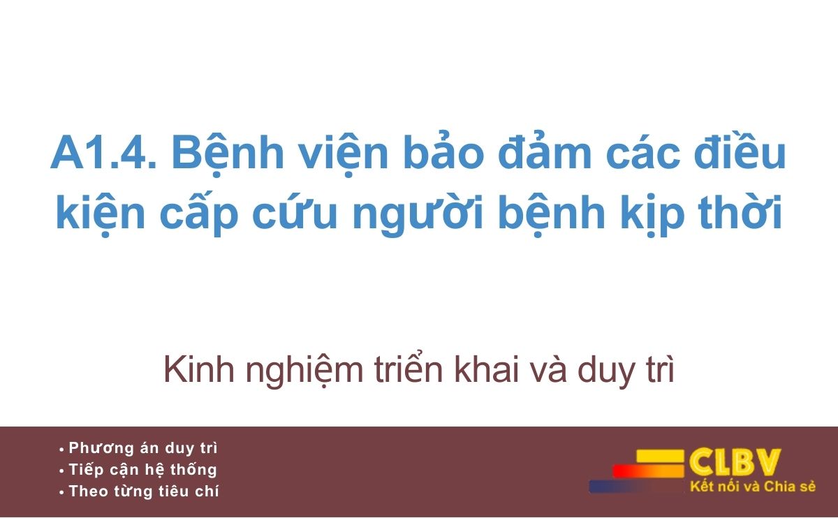 • A1.4 bảo đảm khi có sự cố, bệnh viện không để người bệnh chờ thêm một phút không cần thiết.