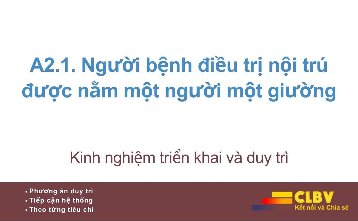 Tiêu chí A2.1 không chỉ nhằm xóa bỏ tình trạng nằm ghép, mà hướng đến việc bảo đảm điều kiện điều trị nội trú tối thiểu về an toàn, kiểm soát nhiễm khuẩn, quyền riêng tư và nhân phẩm người bệnh.