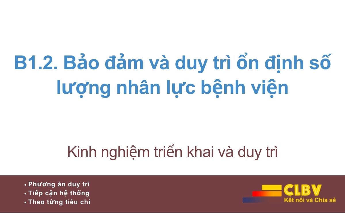 Tiêu chí B1.2 không chỉ yêu cầu bệnh viện đạt đủ định mức nhân lực tại một thời điểm, mà yêu cầu bệnh viện có khả năng duy trì ổn định số lượng nhân lực cần thiết để vận hành an toàn, liên tục và bền vững.