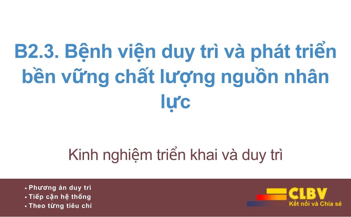 B2.3: Duy trì và nâng cao chất lượng nguồn nhân lực một cách bền vững.