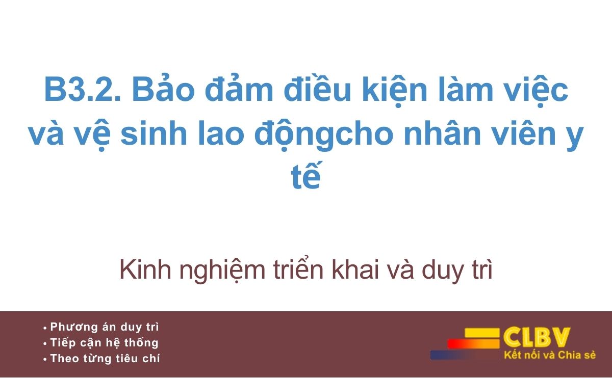 B3.2. Bảo đảm điều kiện làm việc và vệ sinh lao độngcho nhân viên y tế