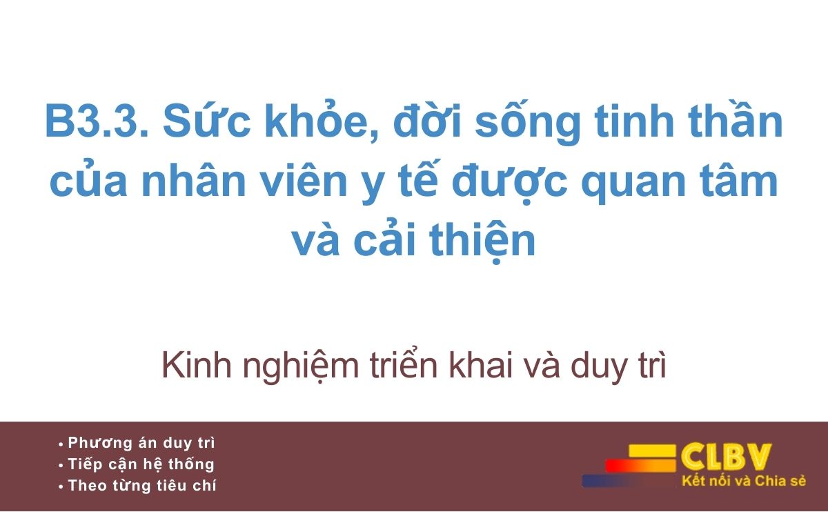 B3.3 phản ánh mức độ trưởng thành của bệnh viện trong quản trị con người, coi nhân viên y tế là đối tượng cần được bảo vệ để bảo vệ người bệnh.