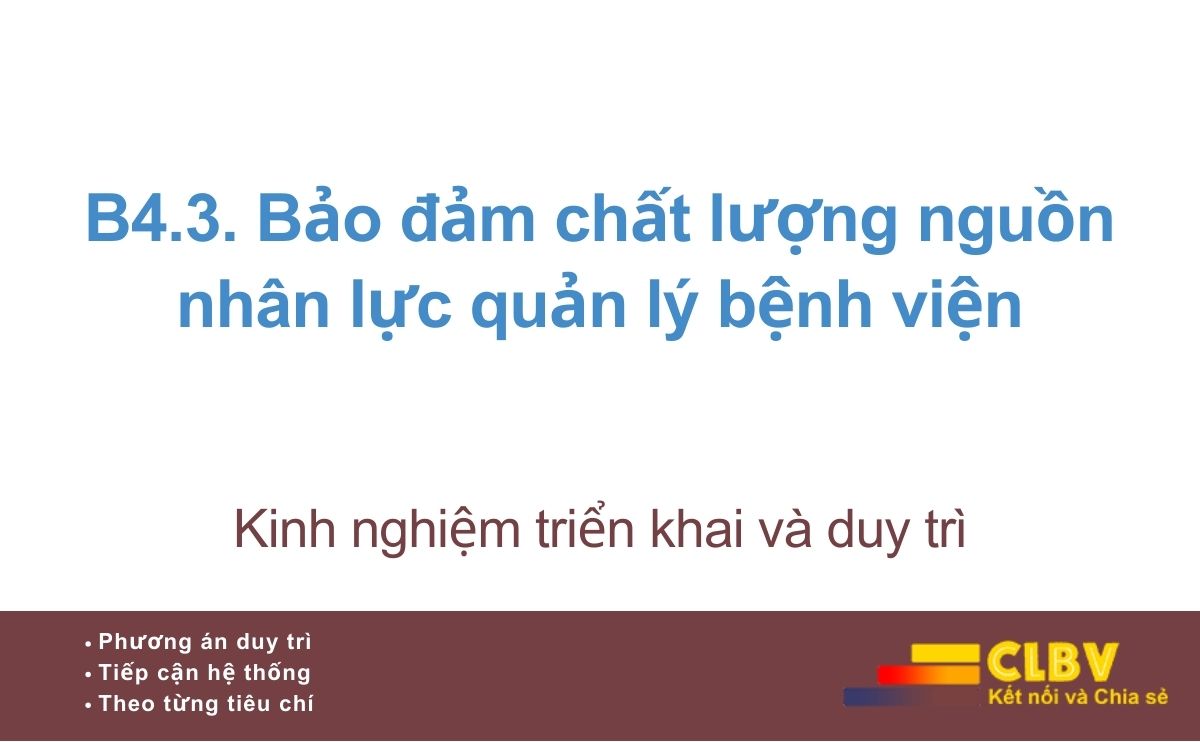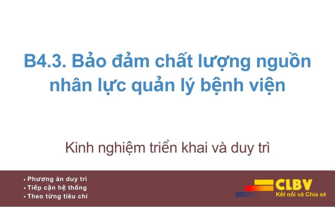 Tiêu chí B4.3 không chỉ yêu cầu bệnh viện có đội ngũ cán bộ quản lý được bổ nhiệm đúng quy định, mà yêu cầu bảo đảm chất lượng thực sự của đội ngũ này – đủ năng lực chuyên môn, quản trị và dẫn dắt để điều hành bệnh viện hiệu quả và bền vững.
