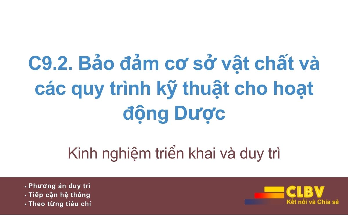 C9.2 là tiêu chí bảo đảm điều kiện nền tảng cho toàn bộ hoạt động quản lý cung ứng và sử dụng thuốc. Nếu không kiểm soát tốt cơ sở vật chất và quy trình kỹ thuật, các tiêu chí như C9.3 (cung ứng thuốc), C9.4 (sử dụng thuốc an toàn, hợp lý) sẽ khó đạt hiệu quả thực chất.