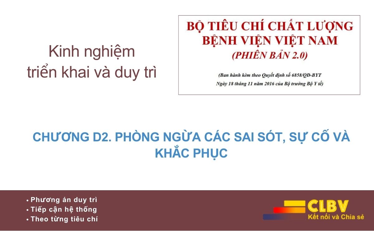 CHƯƠNG D2. PHÒNG NGỪA CÁC SAI SÓT, SỰ CỐ VÀ KHẮC PHỤC