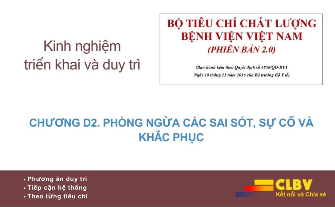 Chính vì vậy, Chương D2 không chỉ là tập hợp các biện pháp kỹ thuật, mà là phép thử cho mức độ trưởng thành của hệ thống quản lý chất lượng và văn hóa an toàn người bệnh đã được xây dựng ở Chương D1.
