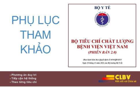 Phần Phụ lục của cuốn sách “Kinh nghiệm triển khai và duy trì Bộ tiêu chí chất lượng bệnh viện Việt Nam” được xây dựng nhằm cung cấp cho người đọc nguồn tài liệu tham chiếu chính thống, thống nhất và có thể tra cứu nhanh trong quá trình triển khai, tự đánh giá, duy trì và cải tiến chất lượng bệnh viện.