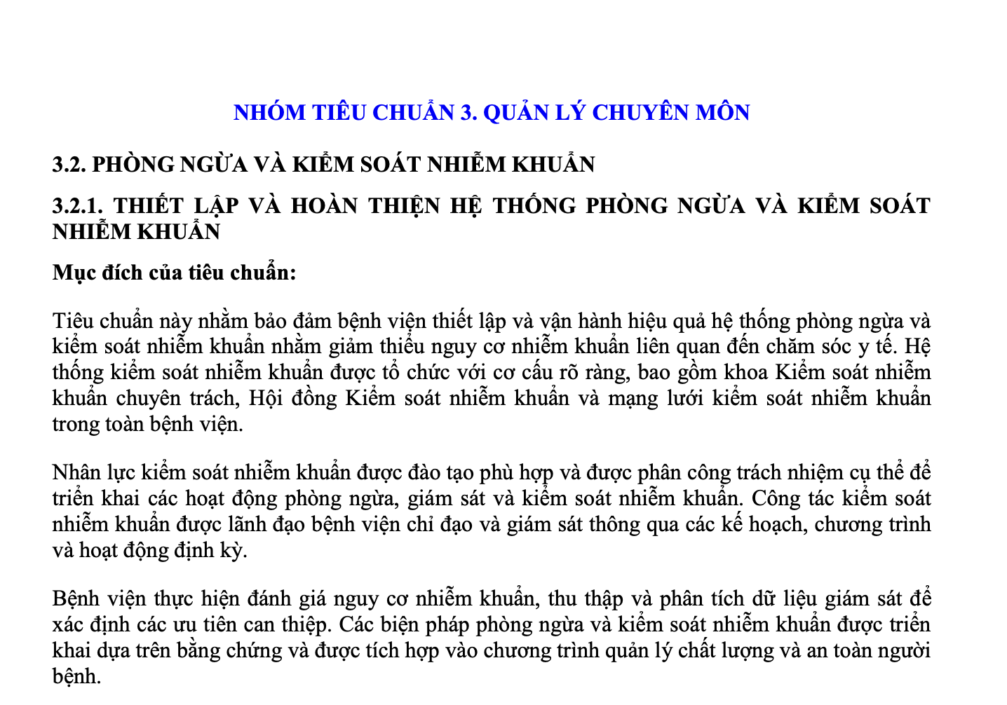 Tài liệu thuộc Nhóm tiêu chuẩn 3 – Quản lý chuyên môn, tập trung vào Phòng ngừa và kiểm soát nhiễm khuẩn (KSNK).