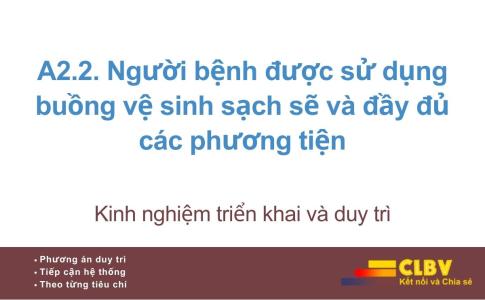 A2.2. Người bệnh được sử dụng buồng vệ sinh sạch sẽ và đầy đủ các phương tiện