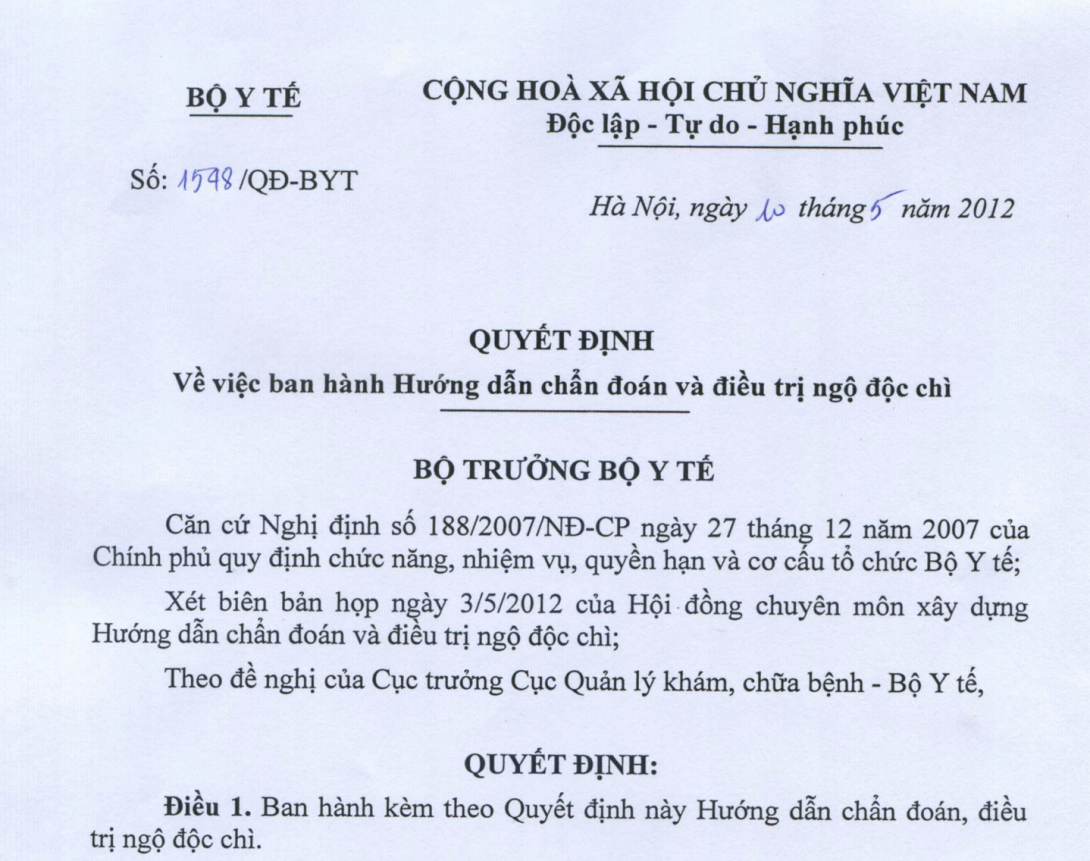 Xét biên bản họp ngày 3/5/2012 của Hội đồng chuyên môn xây dựng Hướng dẫn chẩn đoán và điều trị ngộ độc chì;