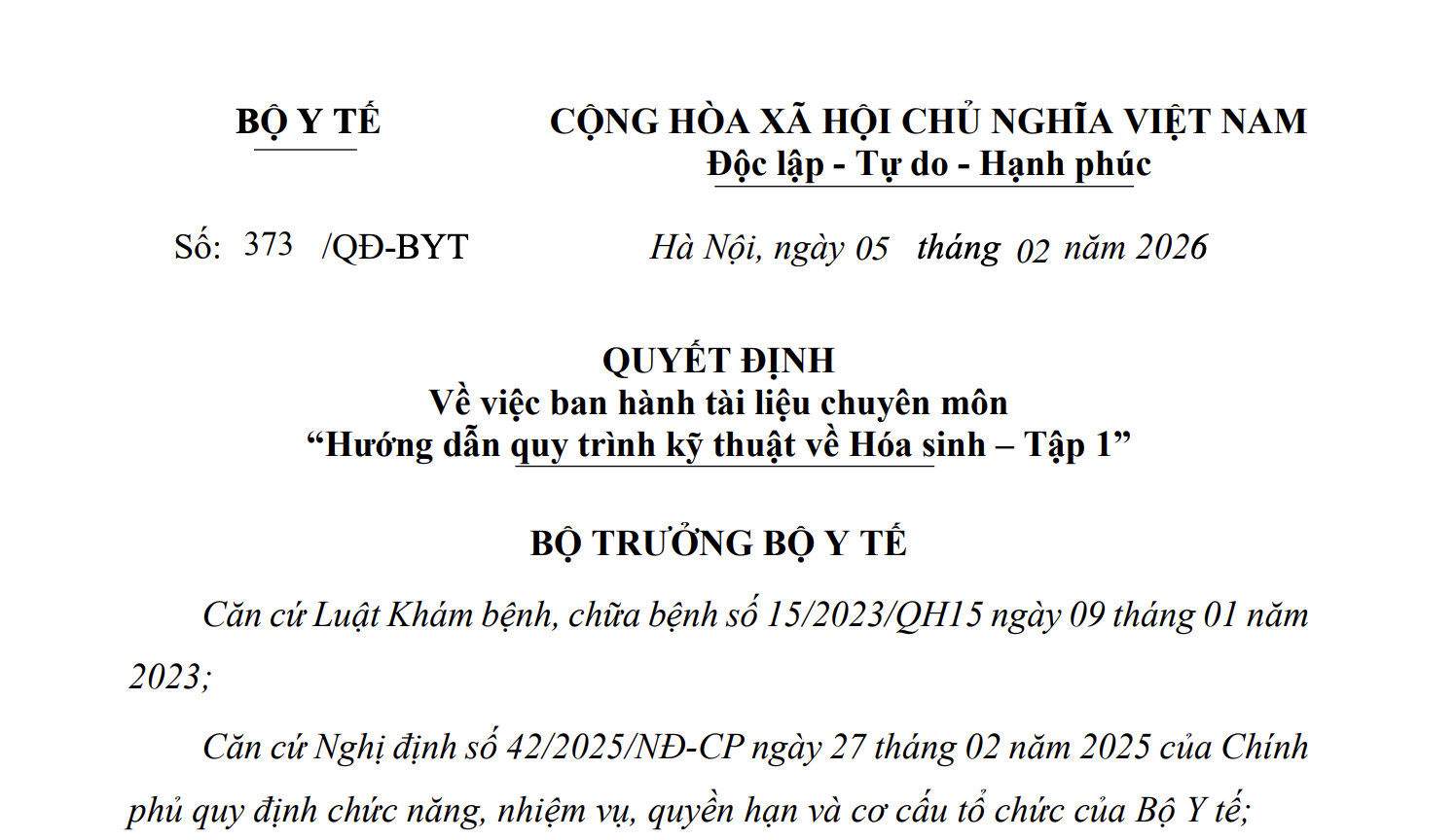 Số: 373/QĐ-BYT | Hà Nội, ngày 05 tháng 02 năm 2026 |