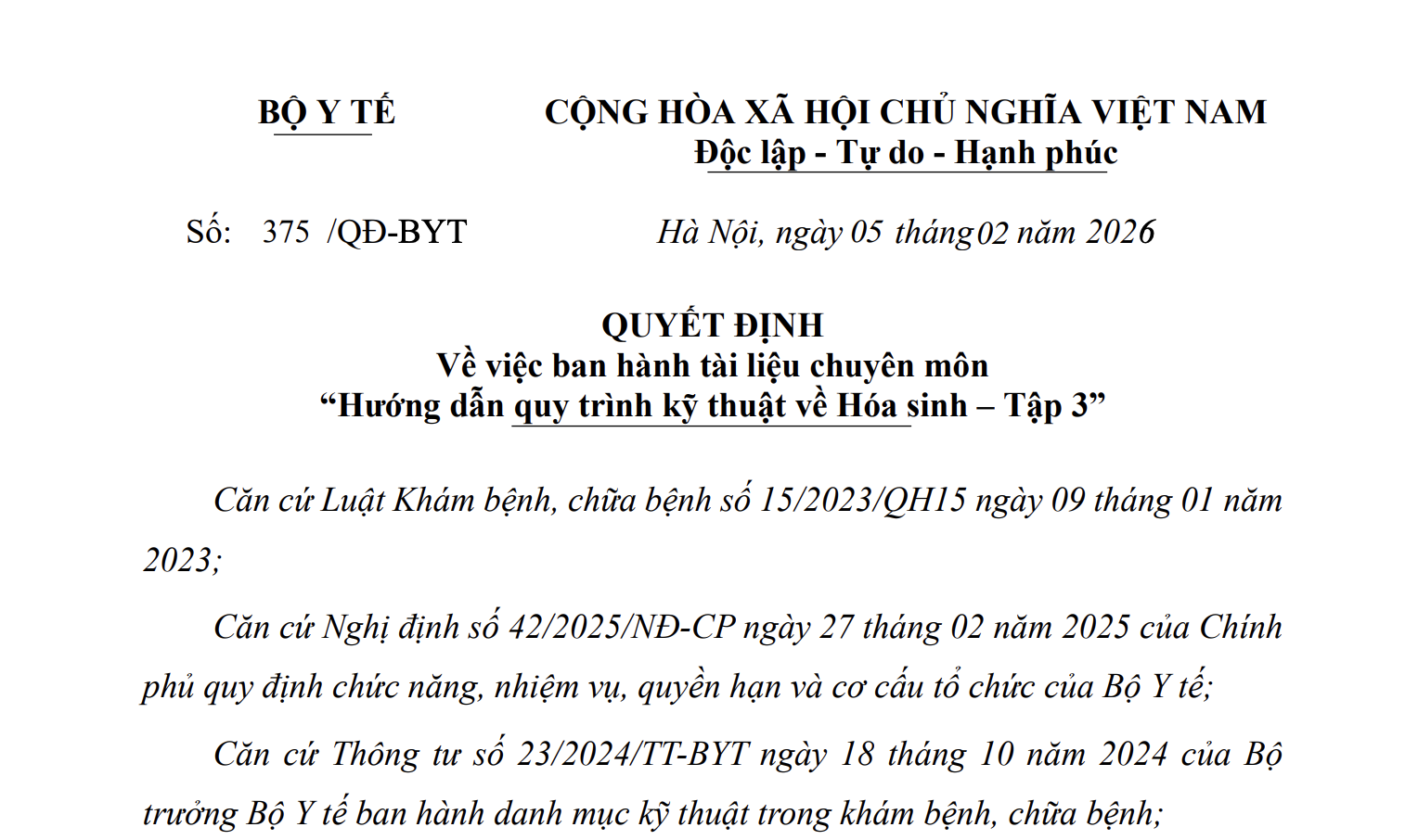Số: 375/QĐ-BYT | Hà Nội, ngày 05 tháng 02 năm 2026 |
