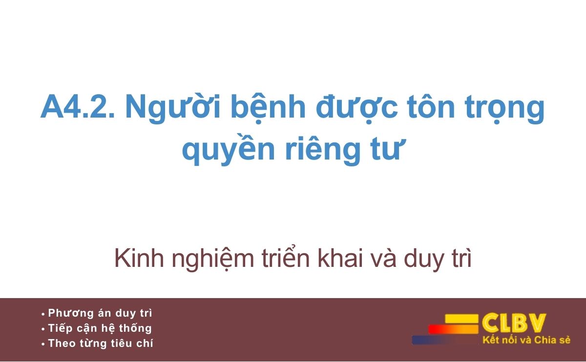 Tiêu chí A4.2 không chỉ yêu cầu bệnh viện có rèm che, buồng khám kín hay quy định bảo mật, mà đánh giá mức độ bệnh viện tôn trọng nhân phẩm, đời sống riêng tư và cảm xúc của người bệnh trong toàn bộ quá trình khám chữa bệnh.