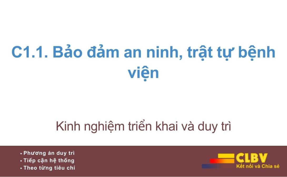 Tiêu chí C1.1 không yêu cầu bệnh viện phải “không xảy ra sự cố an ninh”, mà yêu cầu bệnh viện chủ động thiết lập và vận hành được một hệ thống bảo đảm an ninh, trật tự có tổ chức, có trách nhiệm và có khả năng phòng ngừa, xử lý kịp thời các tình huống phát sinh.