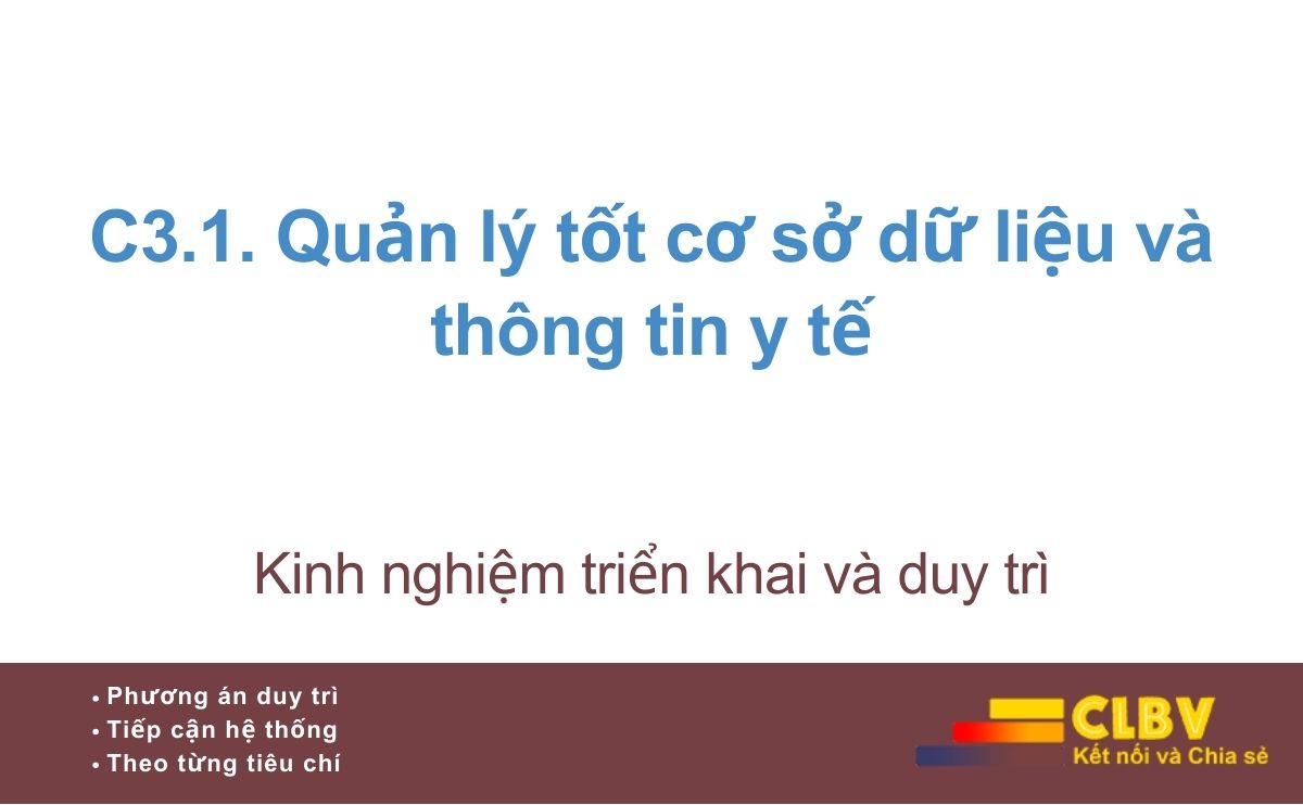 C3.1 là tiêu chí nền tảng của Chương C3 – Công nghệ thông tin y tế. Nếu dữ liệu và thông tin y tế không được quản lý tốt, các giải pháp ứng dụng CNTT ở tiêu chí C3.2 sẽ khó phát huy hiệu quả.