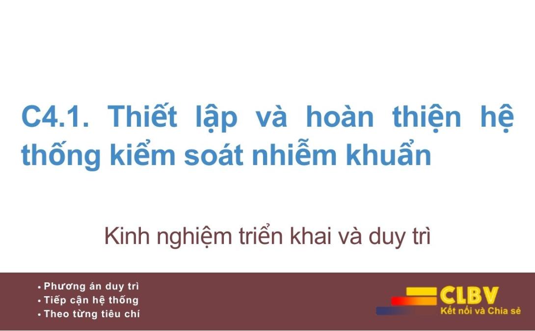 Tiêu chí C4.1 không yêu cầu bệnh viện phải triển khai ngay nhiều kỹ thuật kiểm soát nhiễm khuẩn phức tạp, mà yêu cầu thiết lập được một hệ thống kiểm soát nhiễm khuẩn có tổ chức, có trách nhiệm rõ ràng và có khả năng vận hành thực tế.