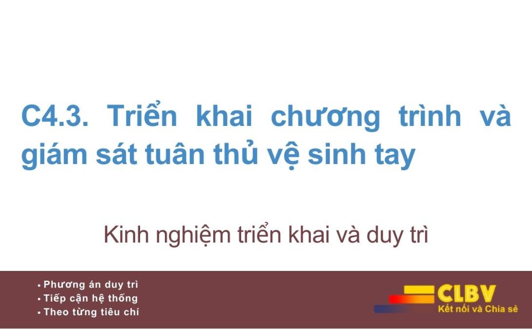 C4.3 là tiêu chí trọng tâm và có tính lan tỏa cao trong kiểm soát nhiễm khuẩn. Khi chương trình vệ sinh tay được triển khai hiệu quả, các hoạt động kiểm soát nhiễm khuẩn khác cũng được cải thiện theo.