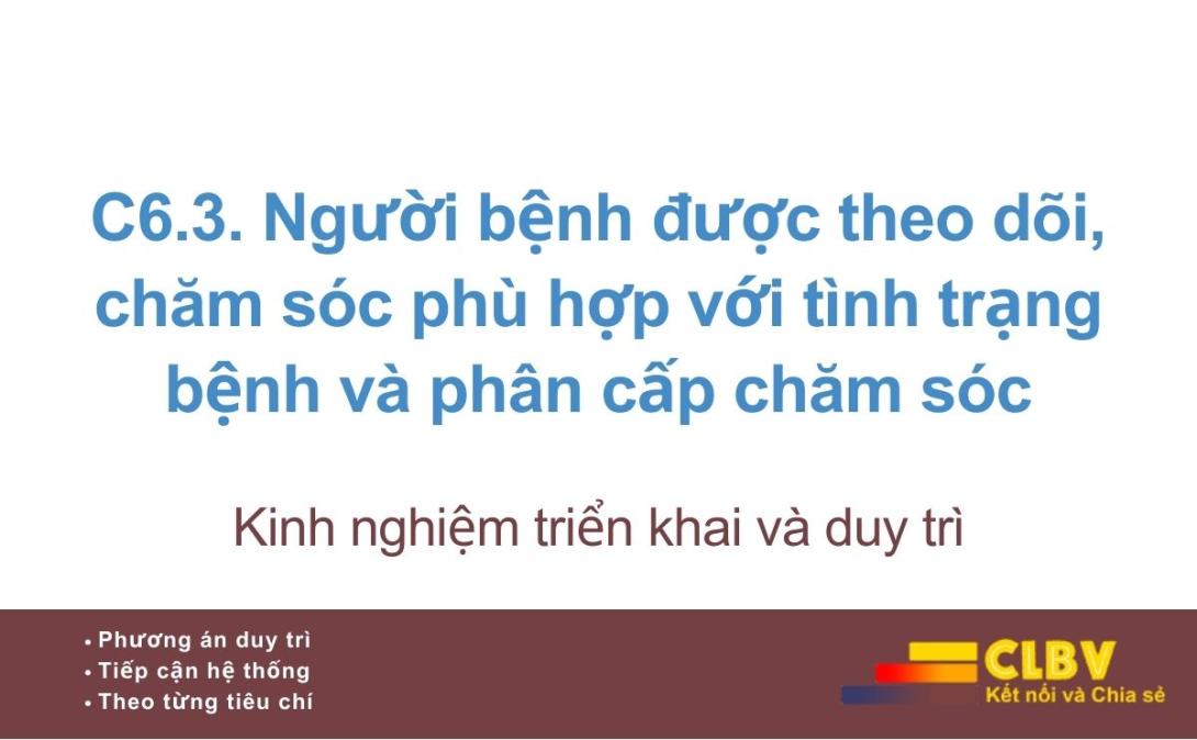 Tiêu chí C6.3 không yêu cầu bệnh viện phải “chăm sóc thật nhiều” hay “theo dõi thật sát tất cả người bệnh như nhau”, mà yêu cầu bệnh viện tổ chức theo dõi và chăm sóc người bệnh dựa trên mức độ nặng, nguy cơ và nhu cầu chăm sóc thực tế.