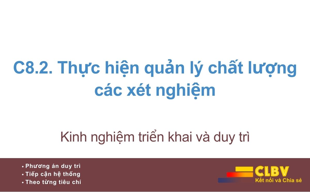 Nếu tiêu chí C8.1 tập trung vào năng lực được phép và năng lực thực tế của khoa xét nghiệm, thì tiêu chí C8.2 đi sâu vào câu hỏi quan trọng hơn: các xét nghiệm đang được thực hiện có được kiểm soát chất lượng một cách hệ thống và liên tục hay không.
