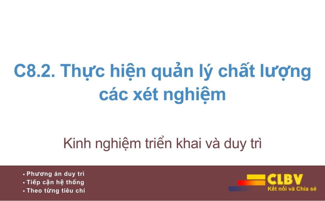 Về bản chất, C8.2 không yêu cầu bệnh viện phải đạt ngay các chuẩn quốc tế cao nhất, mà yêu cầu bệnh viện thiết lập và vận hành được hệ thống quản lý chất lượng xét nghiệm phù hợp với điều kiện thực tế, bảo đảm kết quả xét nghiệm ổn định, tin cậy và an toàn cho người bệnh.