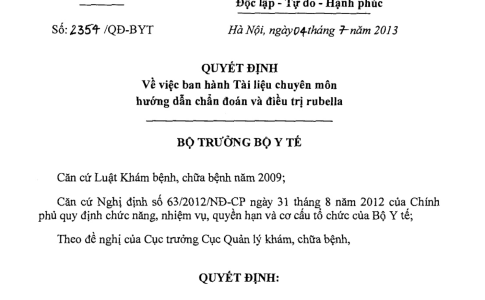 Quyết định 2354/QĐ-BYT ngày 04/07/2013 về Tài liệu chuyên môn hướng dẫn chẩn đoán và điều trị rubella do Bộ trưởng Bộ Y tế ban hành