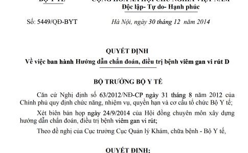Quyết định 5449/QĐ-BYT ngày 30/12/2014 Hướng dẫn chẩn đoán, điều trị bệnh viêm gan vi rút D do Bộ trưởng Bộ Y tế ban hành