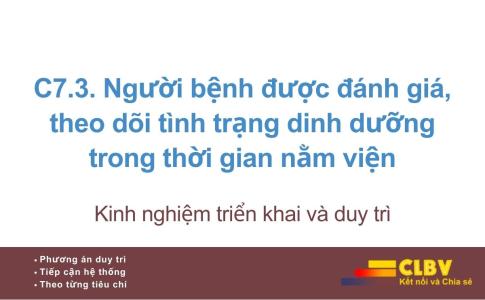 C7.3. Người bệnh được đánh giá, theo dõi tình trạng dinh dưỡng trong thời gian nằm viện