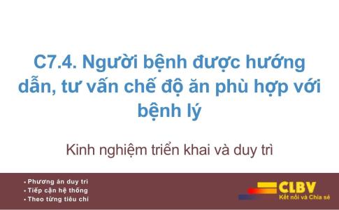 C7.4. Người bệnh được hướng dẫn, tư vấn chế độ ăn phù hợp với bệnh lý