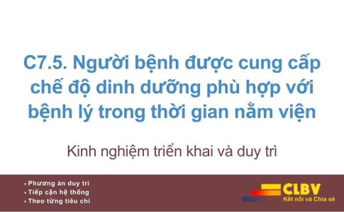 C7.5. Người bệnh được cung cấp chế độ dinh dưỡng phù hợp với bệnh lý trong thời gian nằm viện