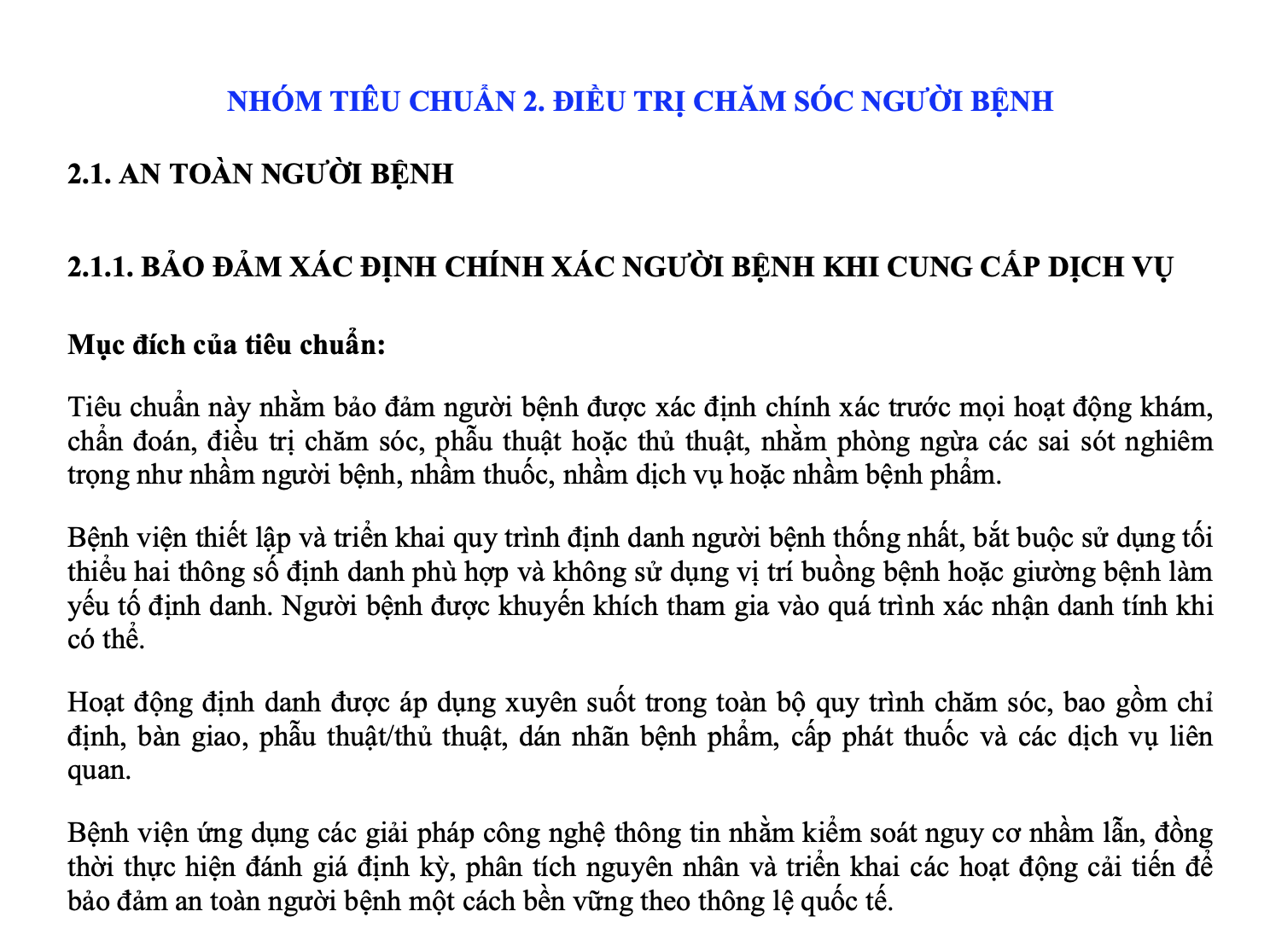 Tài liệu thuộc Nhóm tiêu chuẩn 2 – Điều trị chăm sóc người bệnh, tập trung vào An toàn người bệnh (Patient Safety).