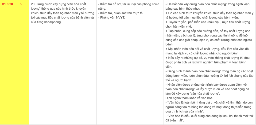 Phụ lục D1.3 - [Cách làm] TM20 Xây dựng văn hóa chất lượng bệnh viện