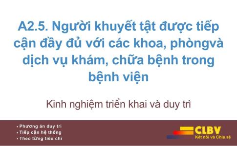 A2.5. Người khuyết tật được tiếp cận đầy đủ với các khoa, phòngvà dịch vụ khám, chữa bệnh trong bệnh viện
