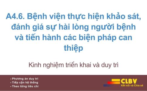 A4.6. Bệnh viện thực hiện khảo sát, đánh giá sự hài lòng người bệnh và tiến hành các biện pháp can thiệp