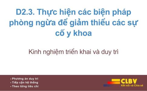 D2.3. Thực hiện các biện pháp phòng ngừa để giảm thiểu các sự cố y khoa