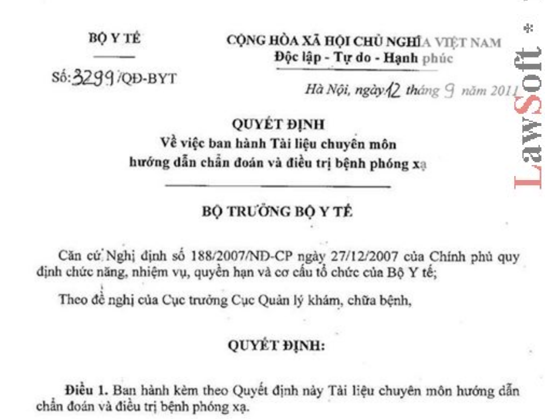VỀ VIỆC BAN HÀNH TÀI LIỆU CHUYÊN MÔN HƯỚNG DẪN CHẨN ĐOÁN VÀ ĐIỀU TRỊ BỆNH PHÓNG XẠ